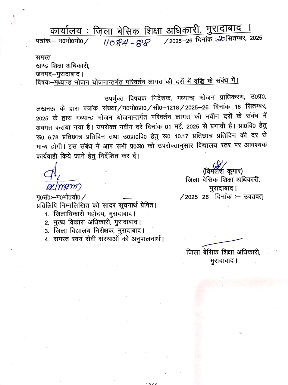 Home PRIMARY KA MASTER मध्यान्ह भोजन योजनान्तर्गत परिवर्तन लागत की दरों में वृद्धि के संबंध में।