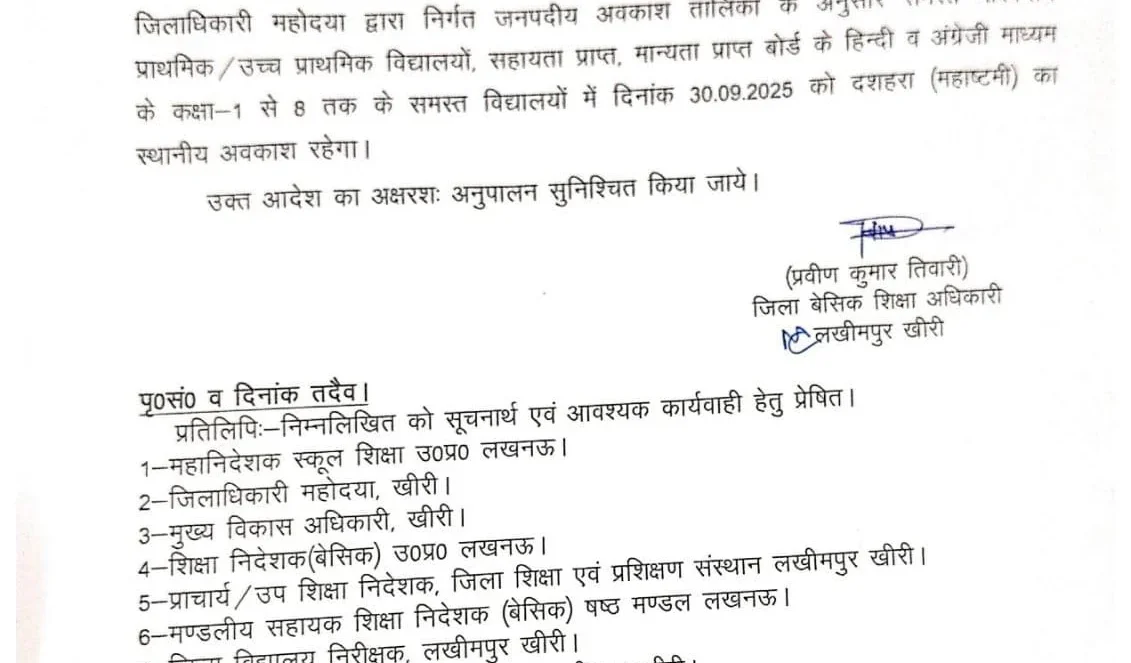 जनपद में 30.09.2025 को दशहरा महाष्टमी अवकाश