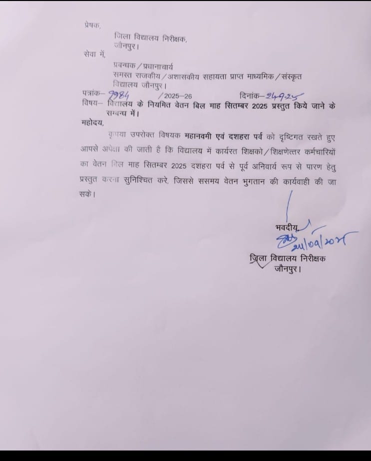 Home PRIMARY KA MASTER NEWS सितंबर माह का वेतन का दशहरा से पहले होगा भुगतान