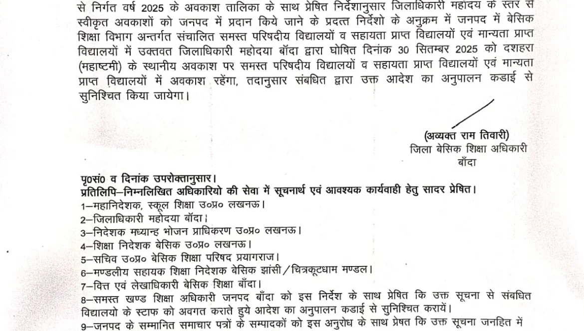 जिले में 30 सितंबर का अवकाश हुआ घोषित, देखिए आदेश