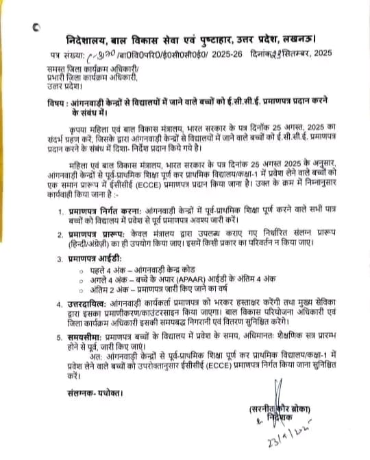 ECCE प्रमाण पत्र जारी करने के सम्बन्ध में जारी आदेश