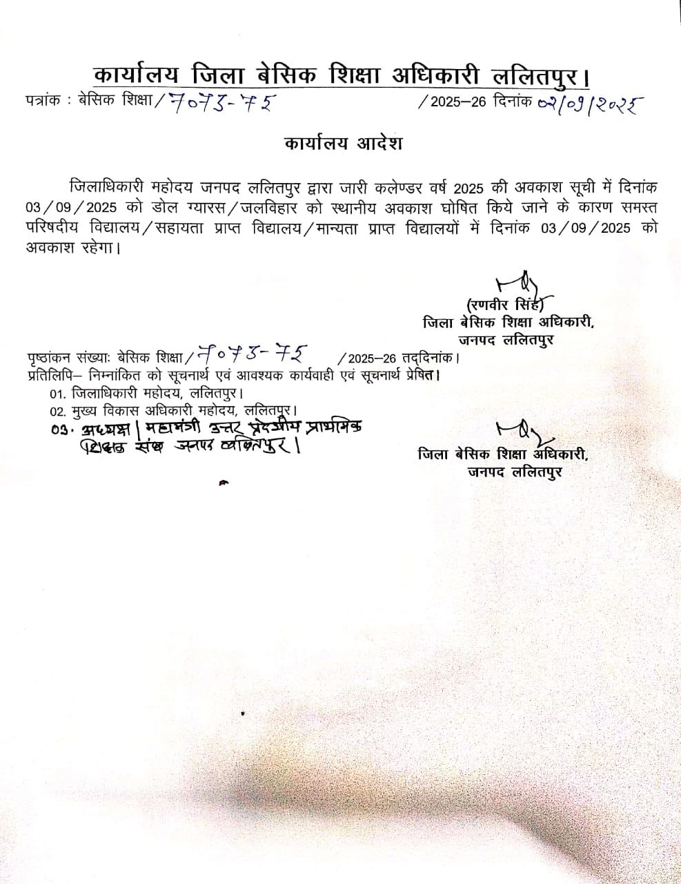 Home HOLIDAY जनपद में अत्यधिक भारी वर्षा के कारण 3 सितंबर का स्कूलों में अवकाश किया गया घोषित