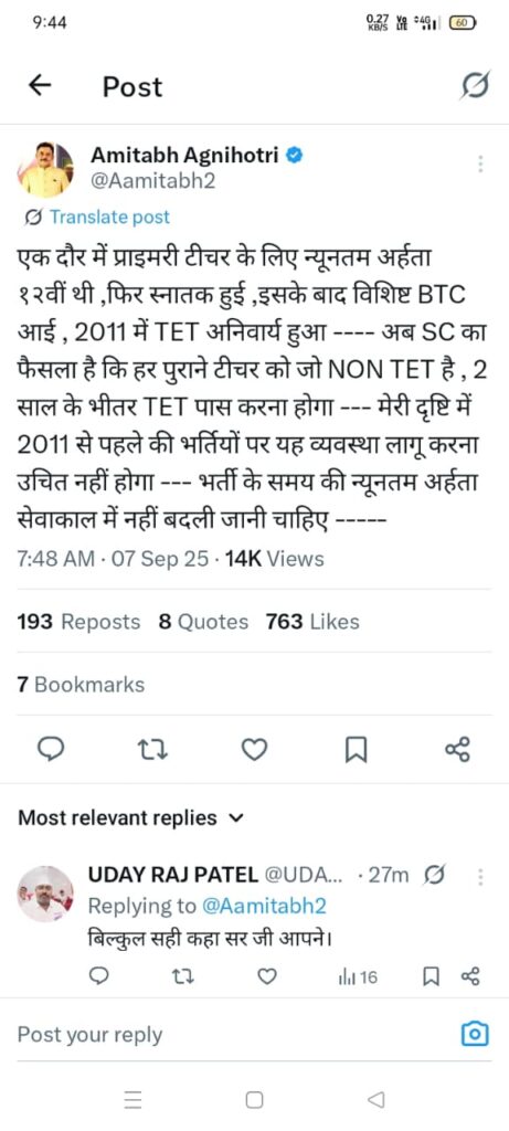 शिक्षकों की TET अनिवार्यता मामले पर अमिताभ अग्निहोत्री का बड़ा बयान