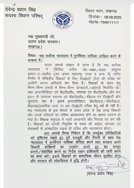 माननीय मुख्यमंत्री जी से टेट प्रकरण एवं अन्य शिक्षक मुद्दों पर माननीय एमएलसी जी की वार्ता, सुप्रीम कोर्ट में पुनर्विचार याचिका की मांग की