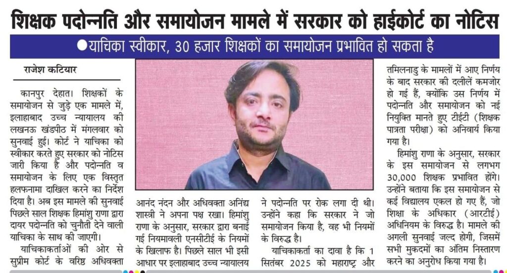 Home PRIMARY KA MASTER NEWS शिक्षक पदोन्नति और समायोजन मामले में सरकार को हाईकोर्ट का नोटिस, याचिका स्वीकार, 30 हजार शिक्षकों का समायोजन प्रभावित हो सकता है
