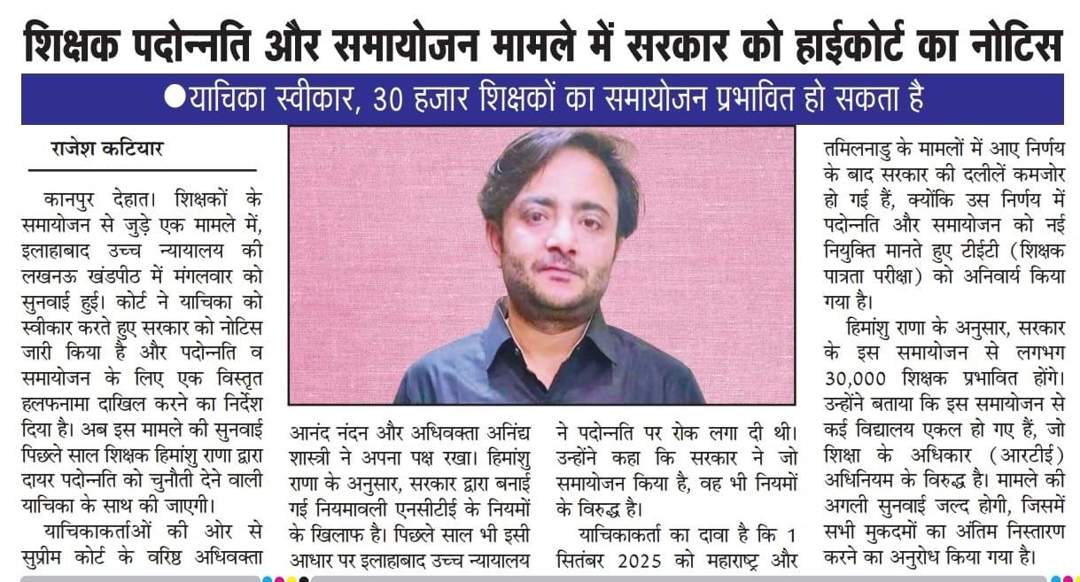 शिक्षक पदोन्नति और समायोजन मामले में सरकार को हाईकोर्ट का नोटिस, याचिका स्वीकार, 30 हजार शिक्षकों का समायोजन प्रभावित हो सकता है