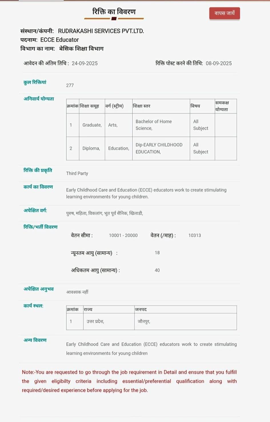 ECCE_EDUCATOR #जौनपुर के पदों भर्ती का विज्ञापन जारी 🎯🎯🎯🎯