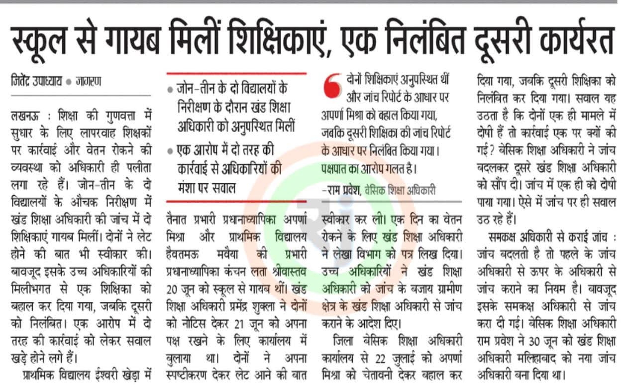 Home PRIMARY KA MASTER NEWS स्कूल से गायब मिलीं शिक्षिकाएं, एक निलंबित दूसरी कार्यरत