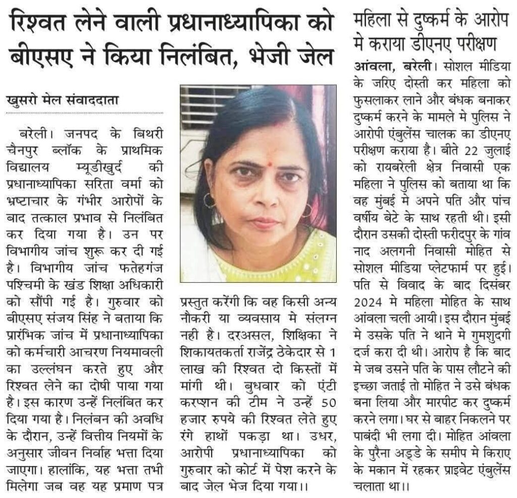 _रिश्वत लेने वाली प्रधानाध्यापिका को बीएसए ने किया निलंबित,भेजा जेल_