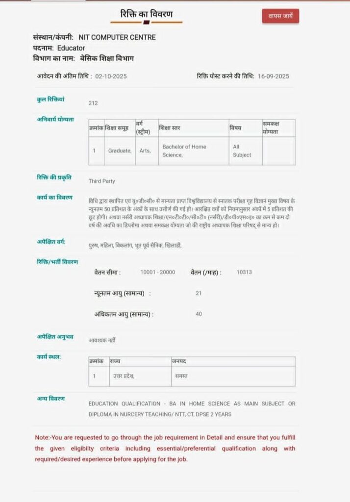 EDUCATOR का विज्ञापन जारी 🎯 आवेदन करने की अन्तिम तिथि – 02.10.2025