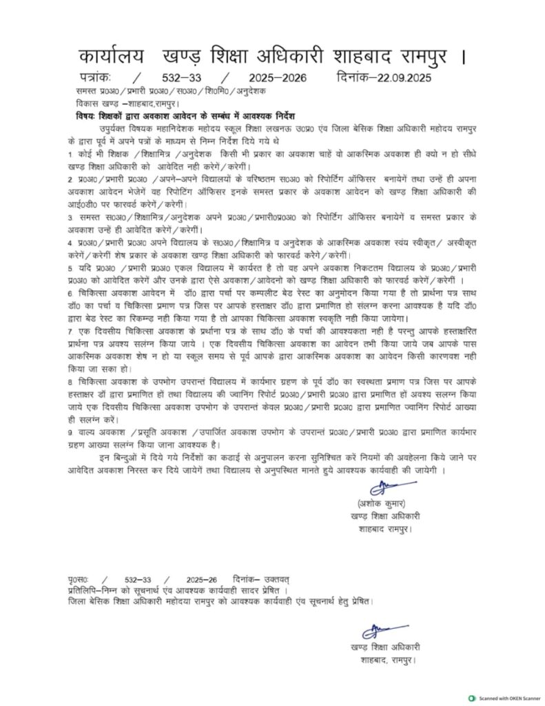 एक नया नियम☝️ 1 दिन का चिकित्सा अवकाश तभी लिया जाएगा जब आपके पास आकस्मिक अवकाश उपलब्ध नहीं है।