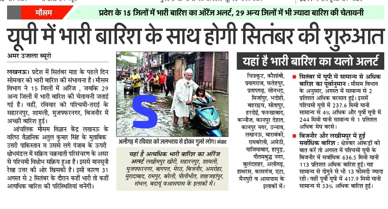 यूपी में भारी बारिश के साथ होगी सितंबर की शुरुआत