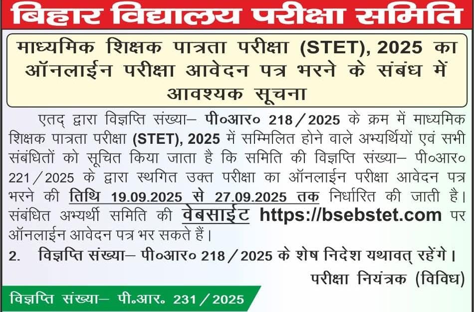 BPSC STET ऑनलाइन आवेदन 19 सितंबर से 27 सितंबर तक होगा💥💯✅
