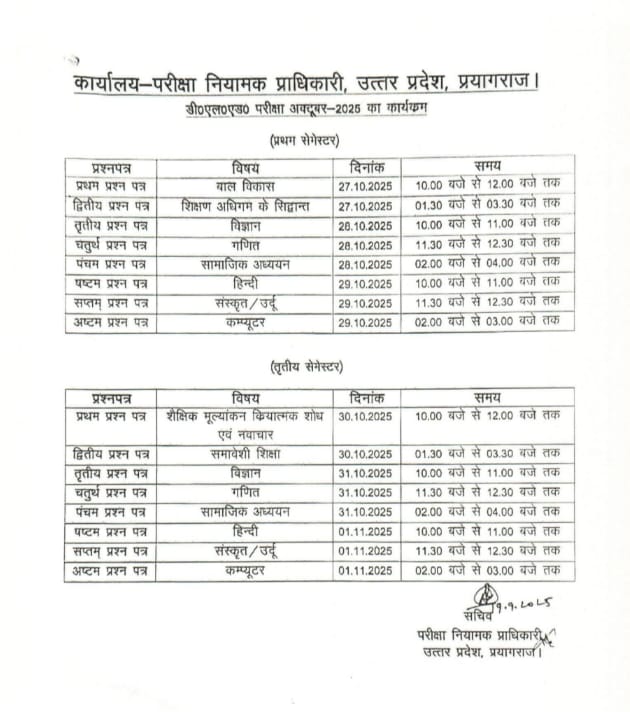 _*डीएलएड.प्रथम सेमेस्टर की परीक्षा 27,28,29 अक्टूबर को संपन्न होगी💥💯✅*_