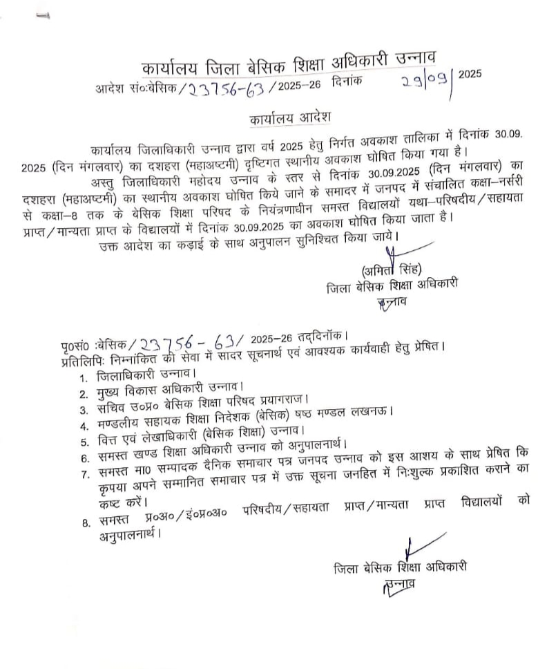 जनपद में 30 सितंबर को रहेगा स्थानीय अवकाश