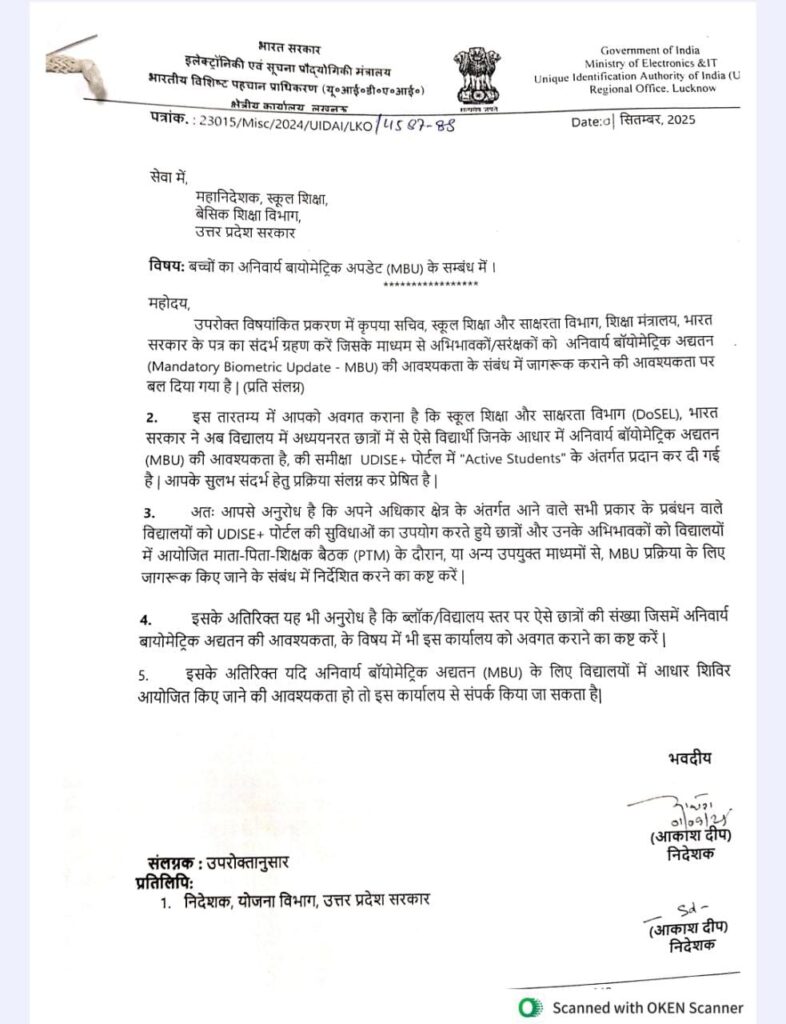 Home PRIMARY KA MASTER बच्चों का अनिवार्य बायोमीट्रिक अपडेट के सम्बन्ध मे