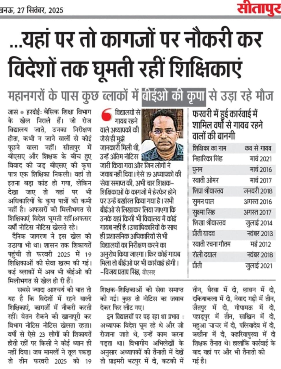 Primary ka master …..यहाँ पर तो कागजों पर नौकरी कर विदेशों तक घूमती रहीं शिक्षिकाएं , BEO की कृपा से उ………..