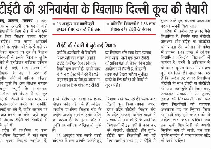 टीईटी की अनिवार्यता के खिलाफ दिल्ली कूच की तैयारी