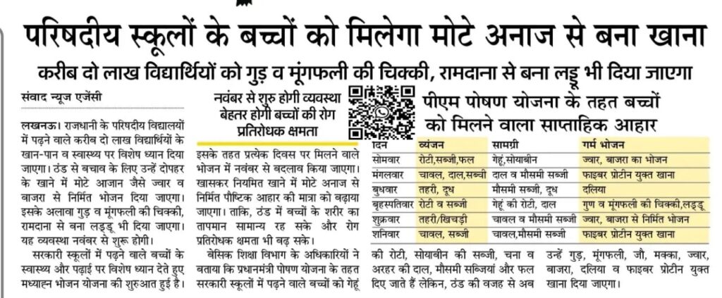 परिषदीय स्कूलों के बच्चों को मिलेगा मोटे अनाज से बना खाना