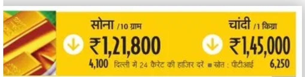 सोना 4100 रुपये गिरकर 121800 रुपये प्रति 10 ग्राम पर पहुंचा, चांदी 6250 रुपये टूटी