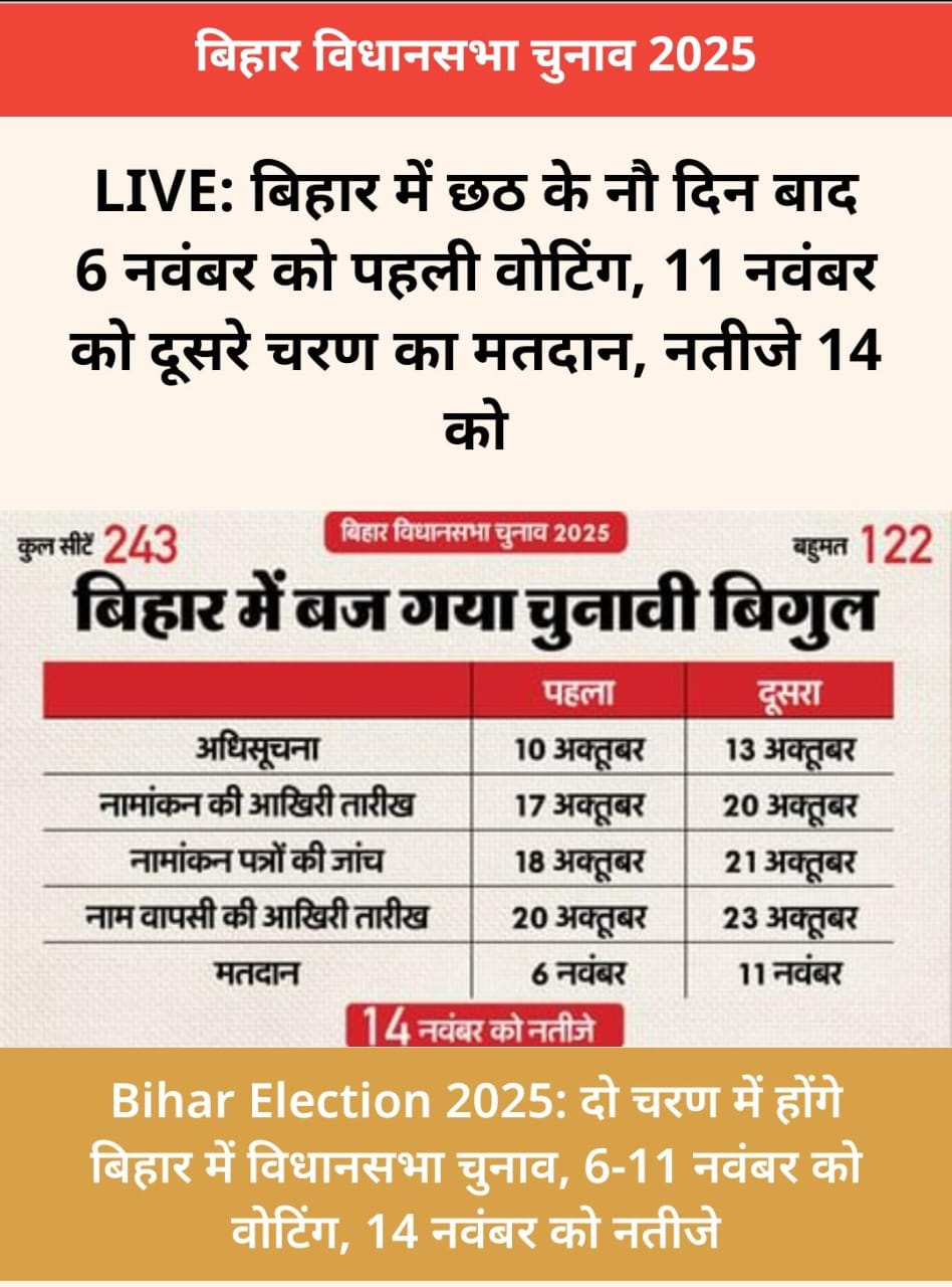 बिहार में 6 और 11 नवंबर को वोटिंग… 14 को आएंगे नतीजे, देखें ‌