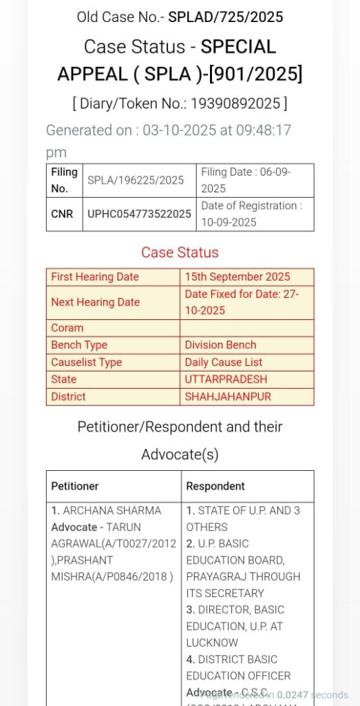 Home PRIMARY KA MASTER NEWS बेसिक शिक्षा विभाग के अंतर्जनपदीय स्थानांतरण विवाद पर इलाहाबाद हाई कोर्ट में सिंगल बेंच के निर्णय के खिलाफ विशेष अपील दाखिल, सुनवाई 27 अक्टूबर 2025 तय