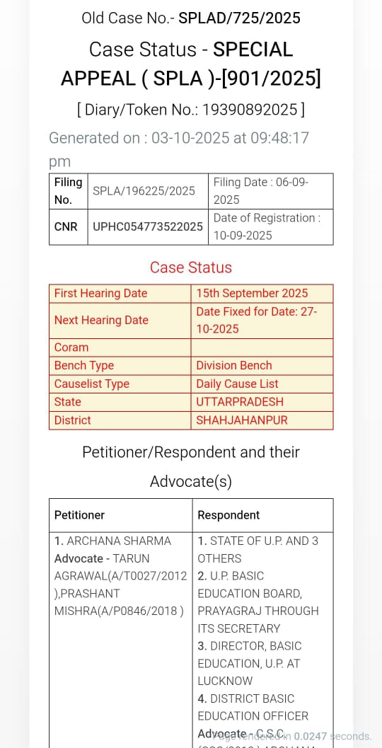 बेसिक शिक्षा विभाग के अंतर्जनपदीय स्थानांतरण विवाद पर इलाहाबाद हाई कोर्ट में सिंगल बेंच के निर्णय के खिलाफ विशेष अपील दाखिल, सुनवाई 27 अक्टूबर 2025 तय