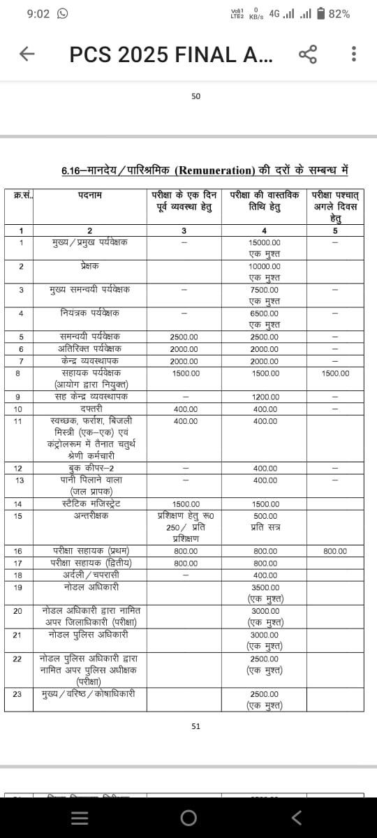 PCS परीक्षा में ड्यूटी करने पर मानदेय / पारिश्रमिक (Remuneration) की दरों के सम्बन्ध में,जानिए कितना मिलेगा ड्यूटी का रुपया