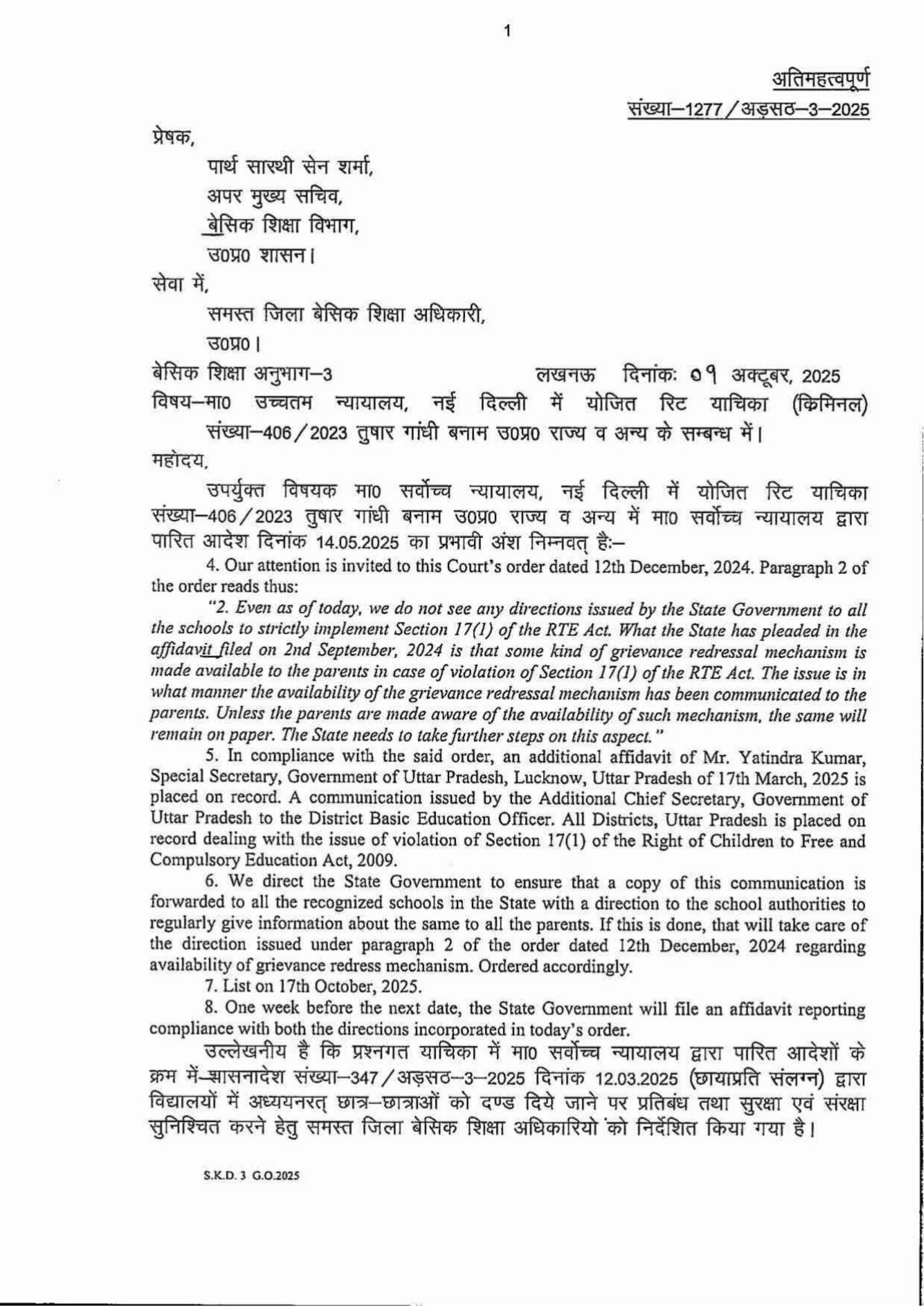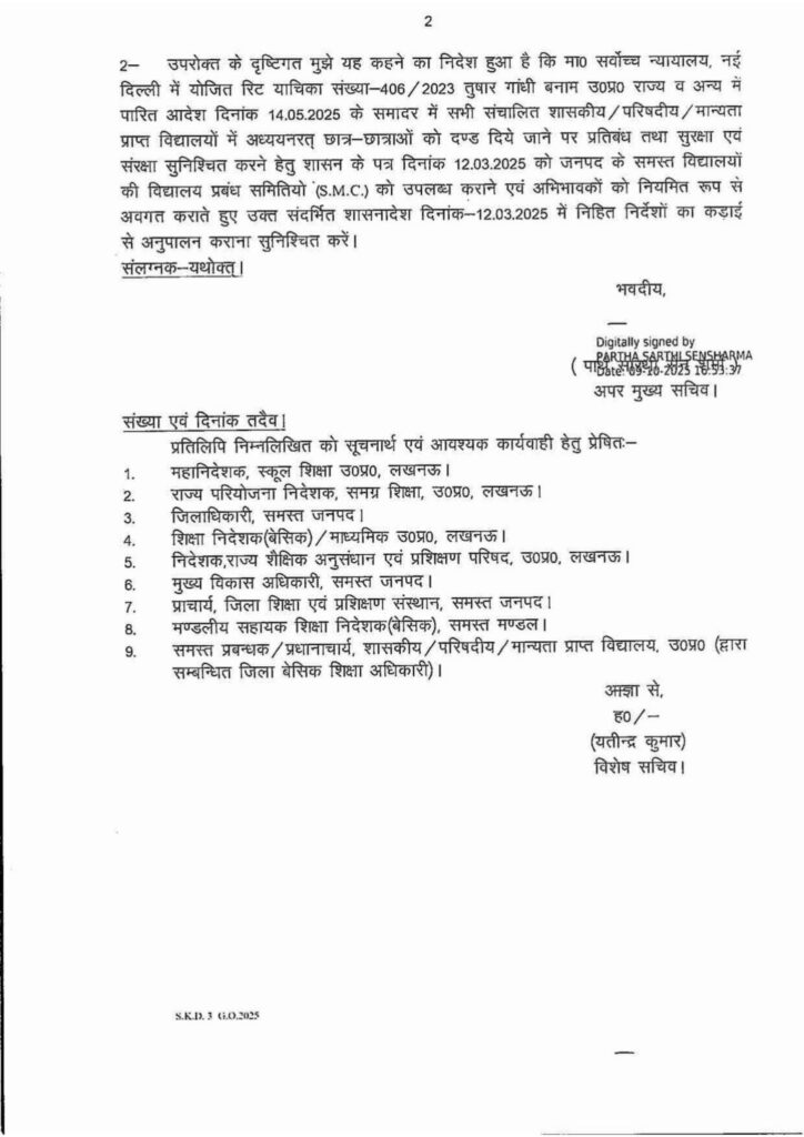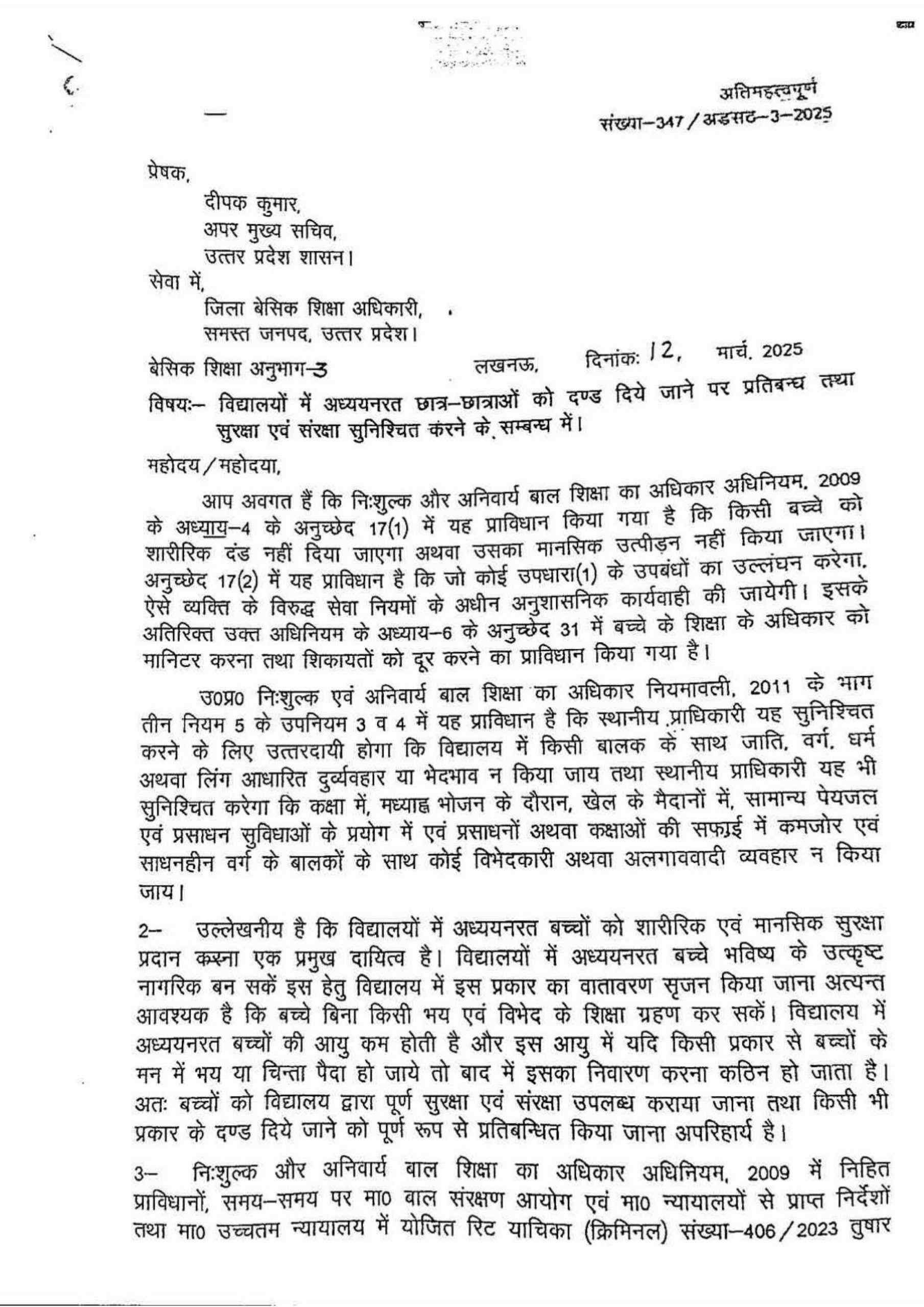 Home PRIMARY KA MASTER विद्यालयों में अध्ययनरत छात्र-छात्राओं को दण्ड दिये जाने पर प्रतिबन्ध तथा सुरक्षा एवं संरक्षा सुनिश्चित करने के सम्बन्ध में