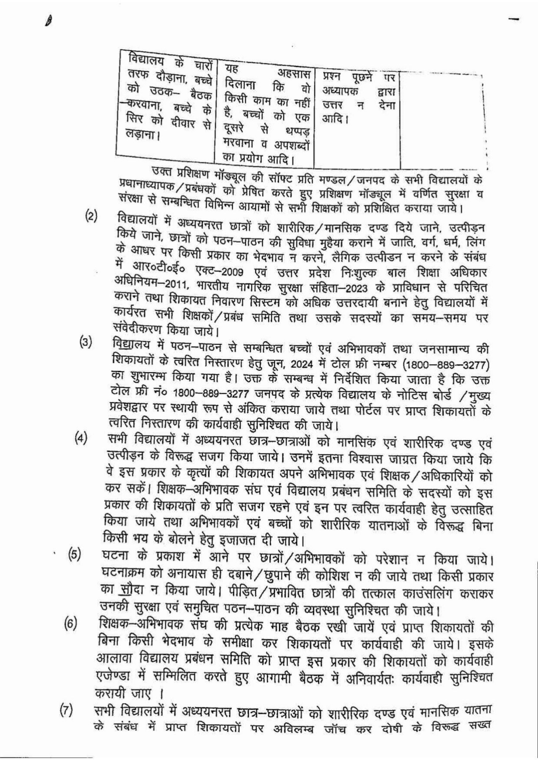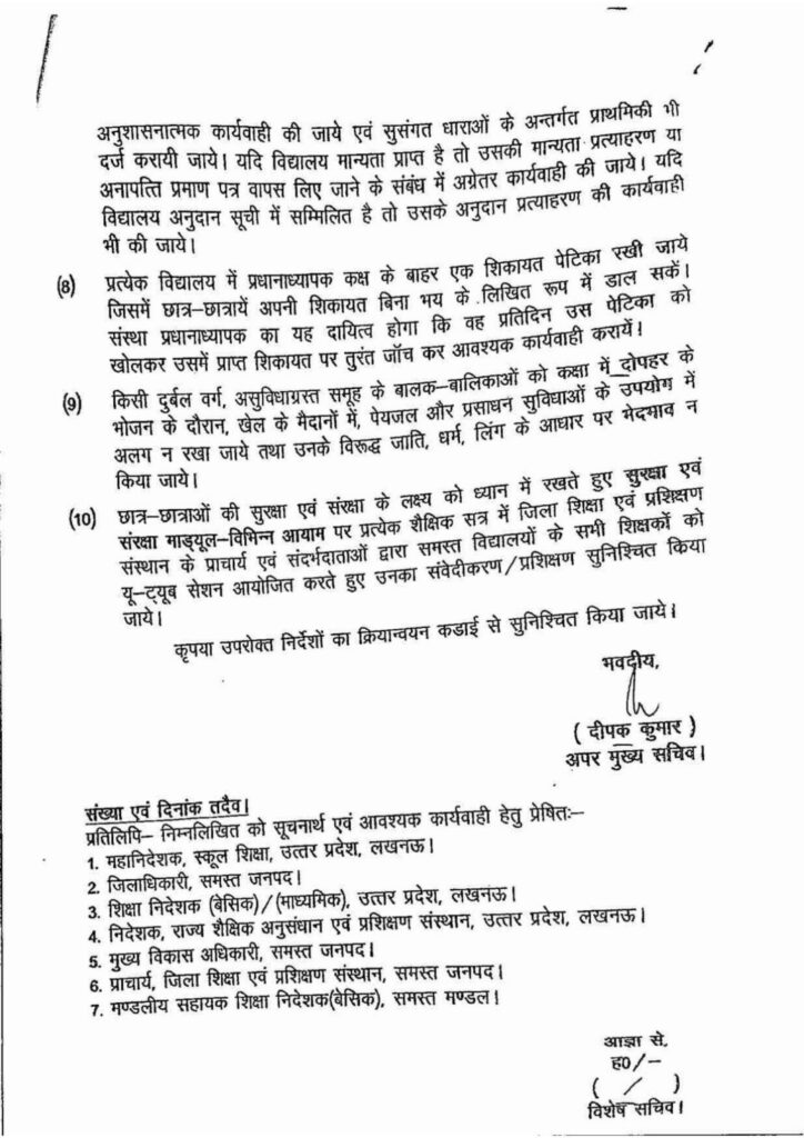 विद्यालयों में अध्ययनरत छात्र-छात्राओं को दण्ड दिये जाने पर प्रतिबन्ध तथा सुरक्षा एवं संरक्षा सुनिश्चित करने के सम्बन्ध में
