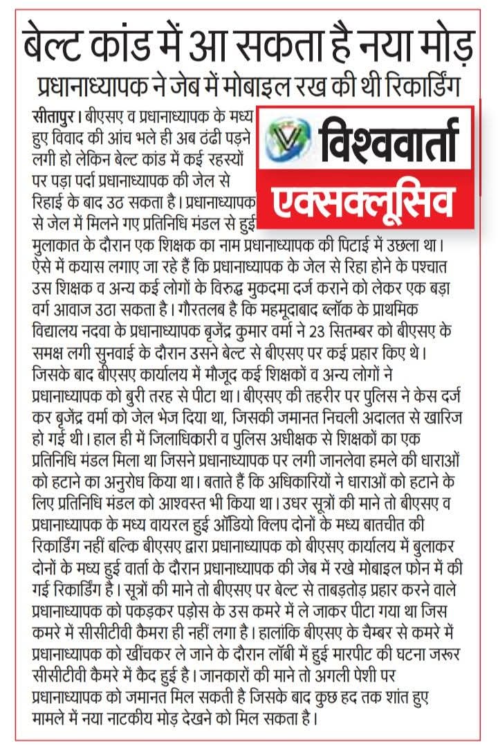 Home PRIMARY KA MASTER NEWS बेल्ट कांड में आ सकता है नया मोड़ प्रधानाध्यापक ने जेब में मोबाइल रख की थी रिकार्डिंग