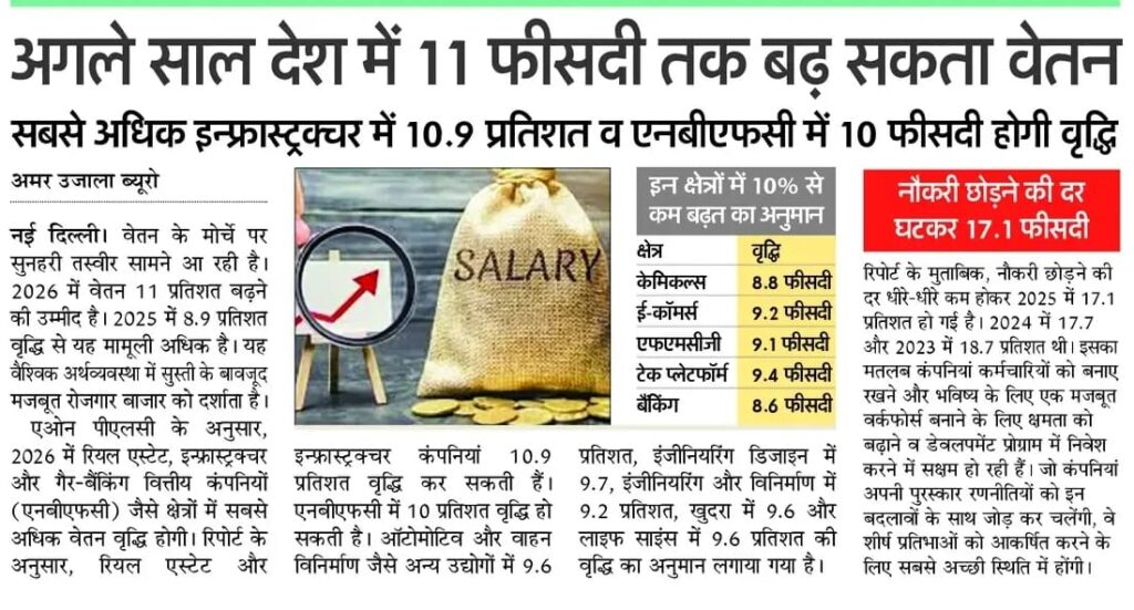 अगले साल देश में 11 फीसदी तक बढ़ सकता वेतन
