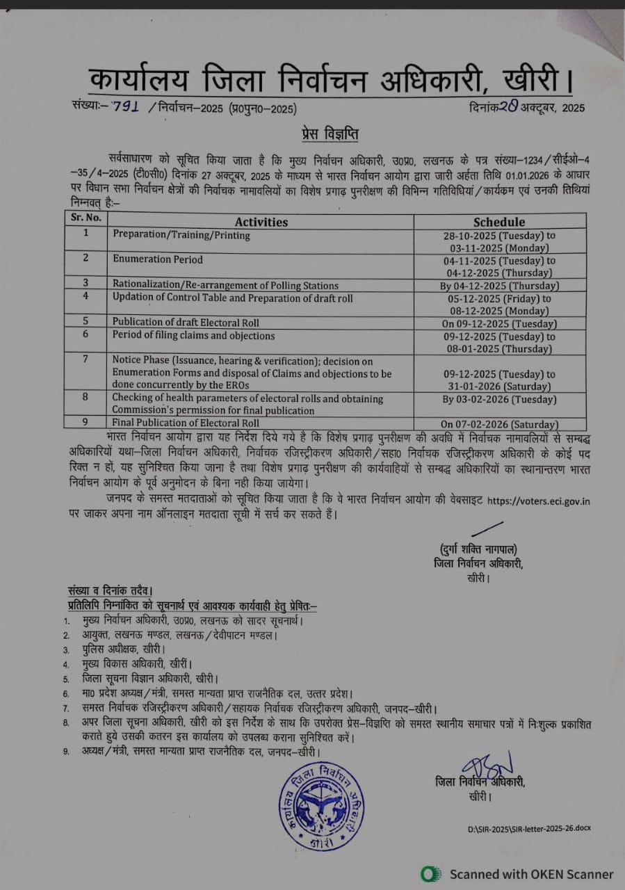लखीमपुर खीरी – मतदाता सूची का विशेष प्रगाढ़ पुनरीक्षण शुरू