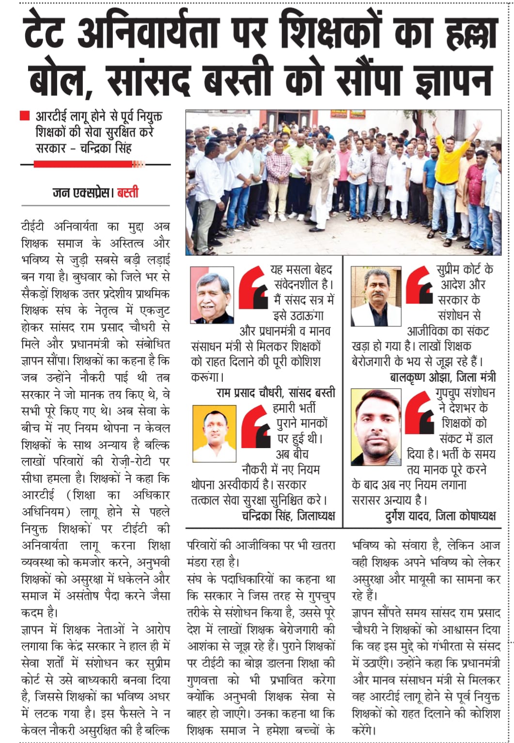 Home PRIMARY KA MASTER NEWS टेट अनिवार्यता पर शिक्षकों का हल्ला बोल, सांसद को सौंपा ज्ञापन