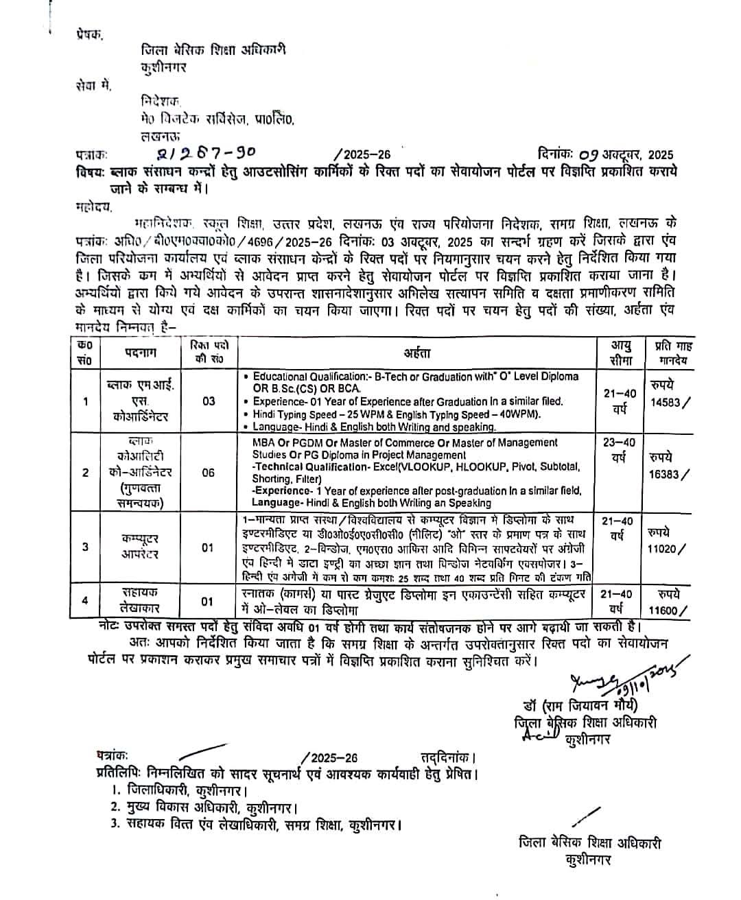 कार्य स्थल- जिला कुशीनगर