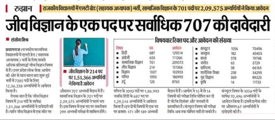Home PRIMARY KA MASTER NEWS जीव विज्ञान के एक पद पर सर्वाधिक 707 की दावेदारी