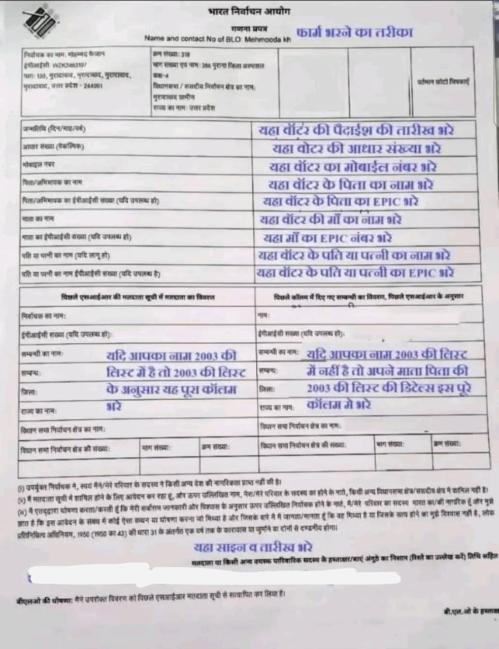 BLO गणना प्रपत्र: फार्म भरने का तरीका