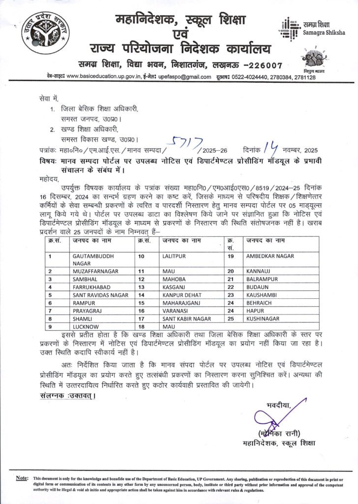 Home PRIMARY KA MASTER मानव सम्पदा पोर्टल पर उपलब्ध नोटिस एवं डिपार्टमेण्टल प्रोसीडिंग मॉड्यूल के प्रभावी संचालन के संबंध में।