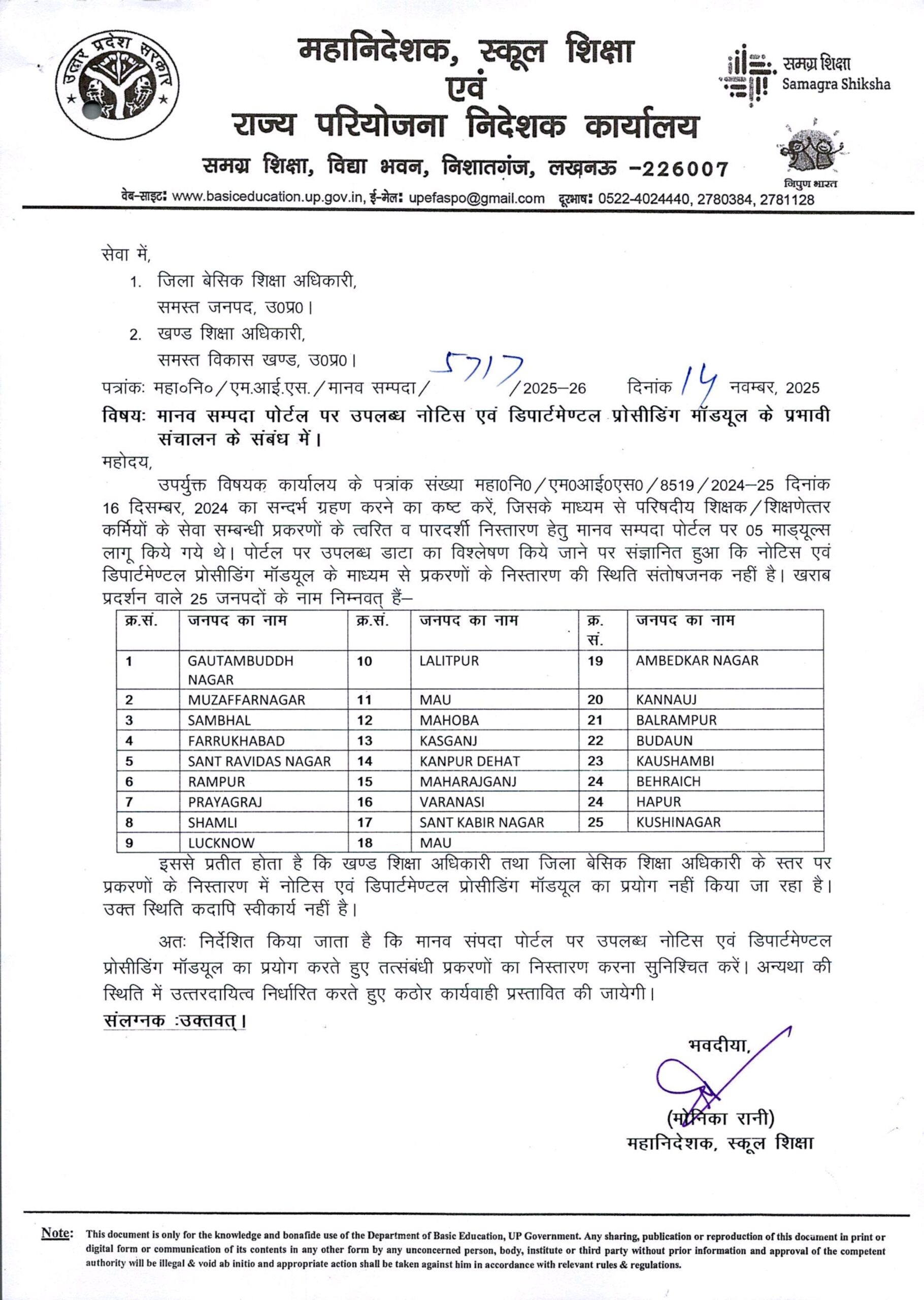 मानव सम्पदा पोर्टल पर उपलब्ध नोटिस एवं डिपार्टमेण्टल प्रोसीडिंग मॉड्यूल के प्रभावी संचालन के संबंध में।