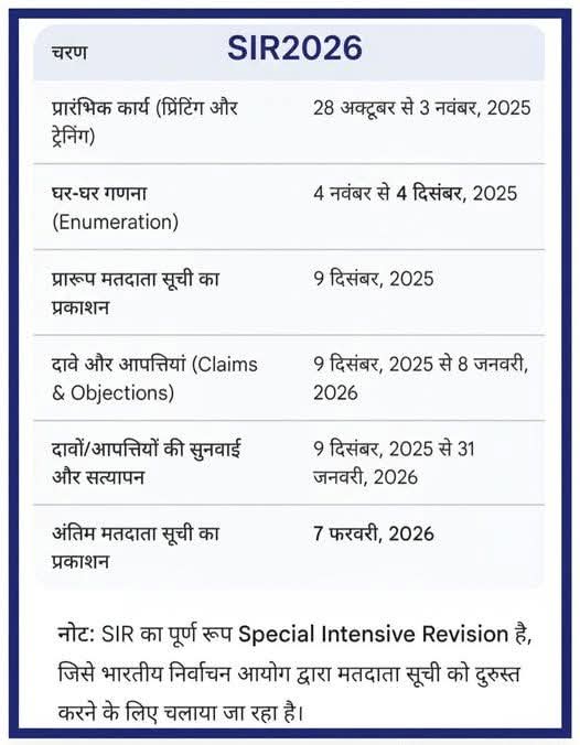 *4 दिसंबर घर- घर जाकर SIR करने का आखिरी दिन होगा*