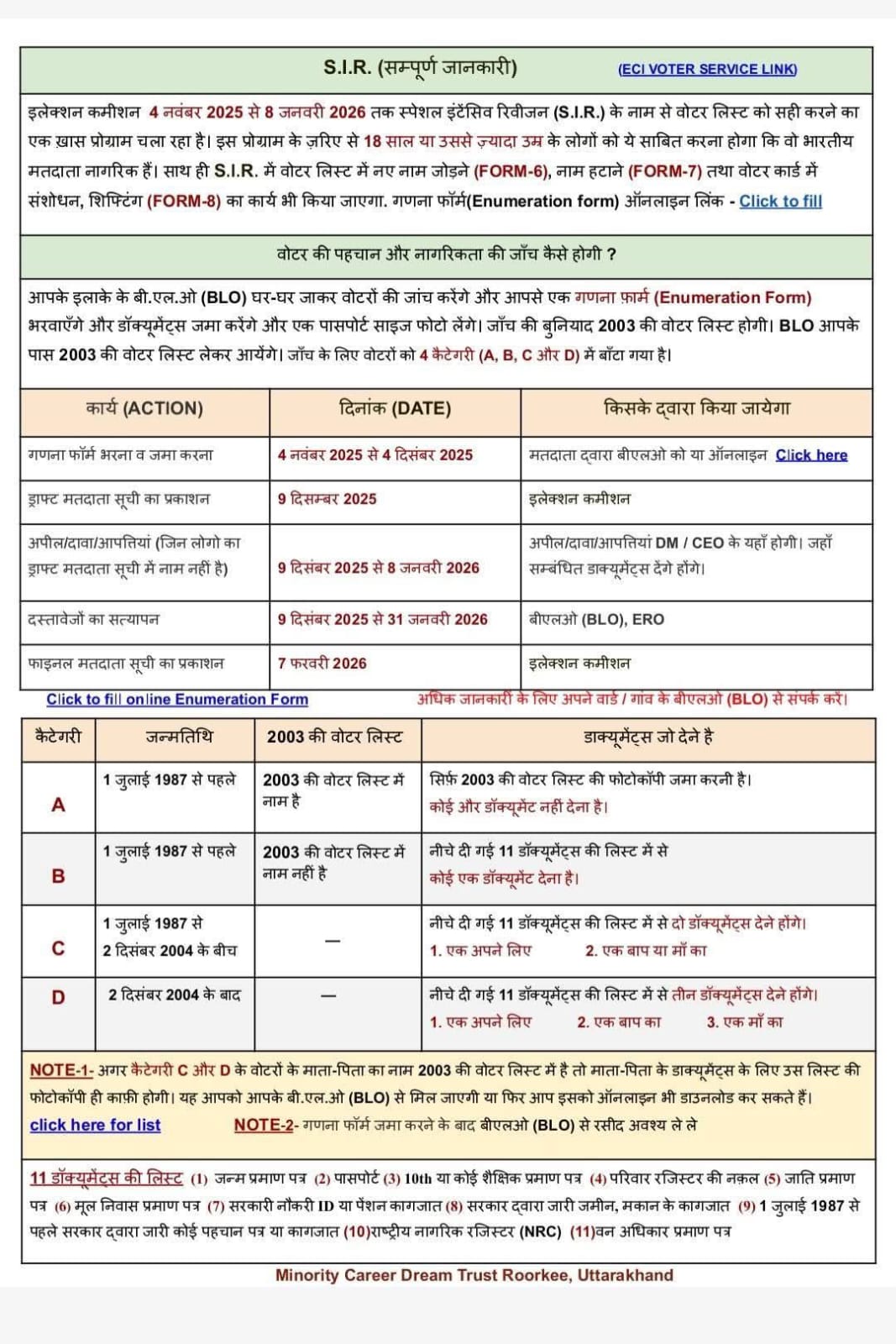 ⛔ Special Intensive Revision (SIR) 2026: घर बैठे 5 मिनट में Enumeration Form भरें और सुनिश्चित करें अपना नाम ड्राफ्ट वोटर लिस्ट में https://basicshikshakhabar.com/2025/11/h-3067/