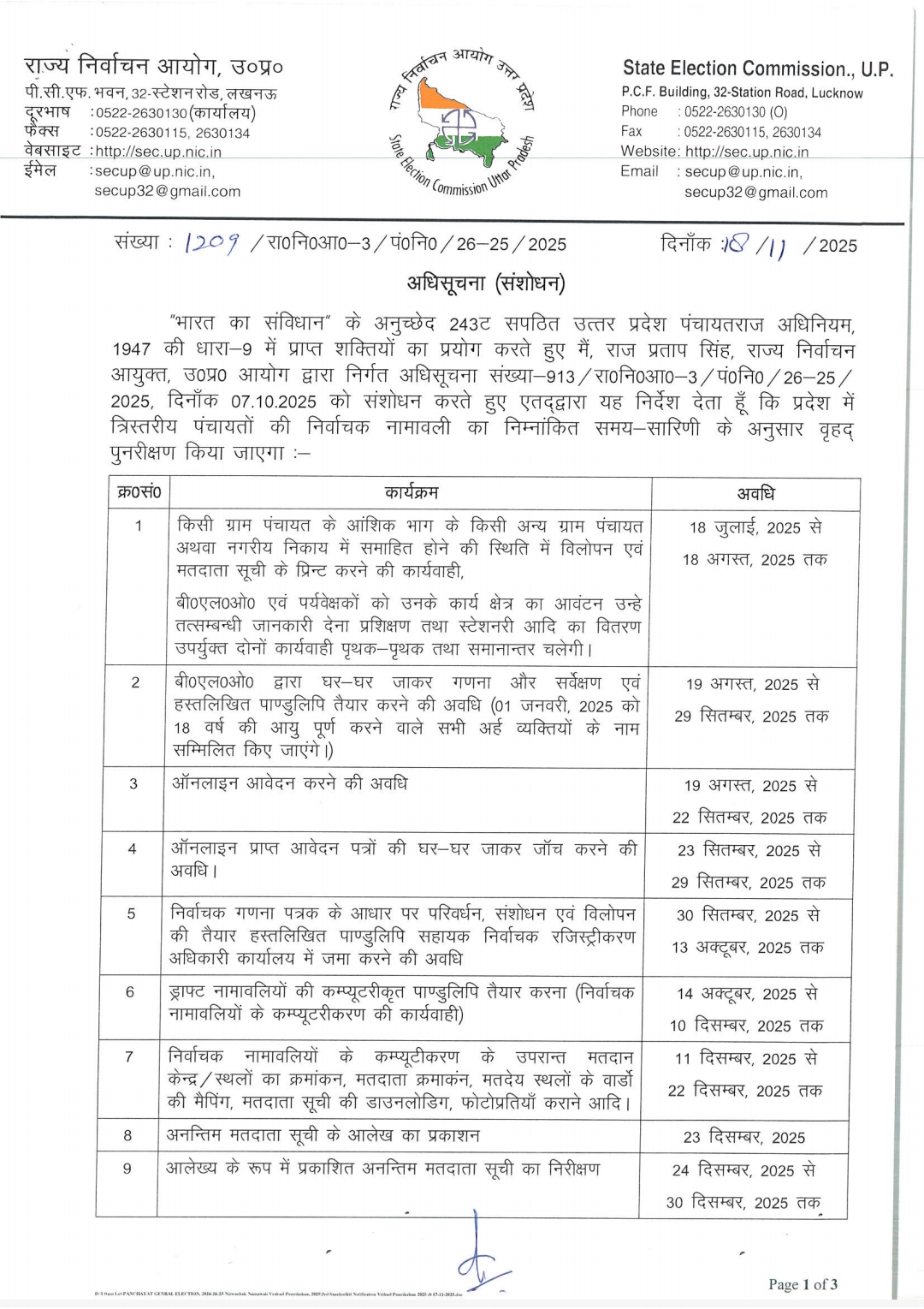 BLO बने परिषदीय शिक्षकों का शीतावकाश होगा निरस्त, पंचायत सूची पुनरीक्षण एवं SIR कार्य संबंधी संशोधित अधिसूचना देखें