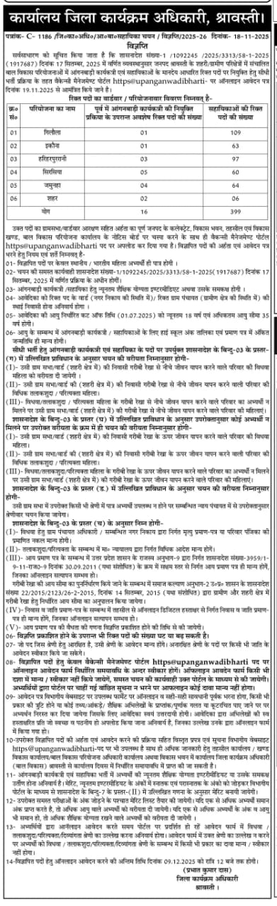 आंगनबाड़ी भर्ती हेतु विज्ञापन