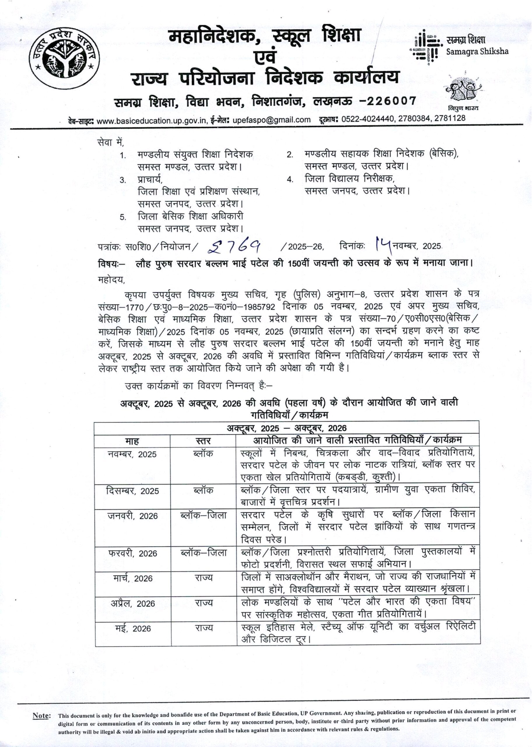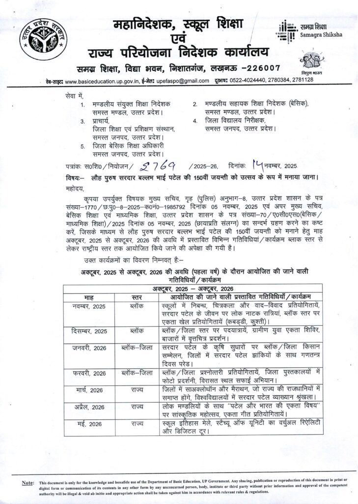 Home PRIMARY KA MASTER लौह पुरुष सरदार बल्लभ भाई पटेल की 150वीं जयन्ती को उत्सव के रूप में मनाया जाना।