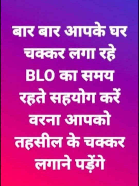 जिस तरह से आज हम अपने बड़ों के 2003 के वोट ढूंढ रहे हैं, आने वाले समय मे हमारी नस्ले हमारे कागज ढूंढ रही होंगी कि 2025 में जब SIR हुई थी तो हमारे दादा या परदादा ने अपना नाम दर्ज कराया था या नहीं, और अगर खुदा ना खस्ता किसी वजह से उन्हें हमारा नाम 2025 की वोटर लिस्ट मे नहीं मिला तो आप सोच सकते हो कि उनके साथ कितनी बड़ी परेशानी खड़ी हो सकती है, इसीलिए इसे सिर्फ एक वोट समझकर मत छोड़ देना जागरूक बनो और जागरूकता फैलाओ और एक दूसरे की मदद करते रहो, हमारे गांव, शहर, गली मोहल्ले और हमारी कोई भी रिश्तेदारी मे कोई आदमी ऐसा ना बचे जिसका SIR फार्म न जमा हो जाए