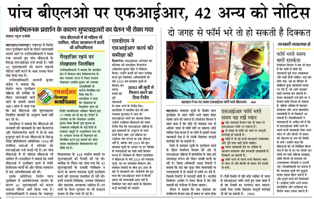 Home PRIMARY KA MASTER NEWS पांच बीएलओ पर एफआईआर, 42 अन्य को नोटिस