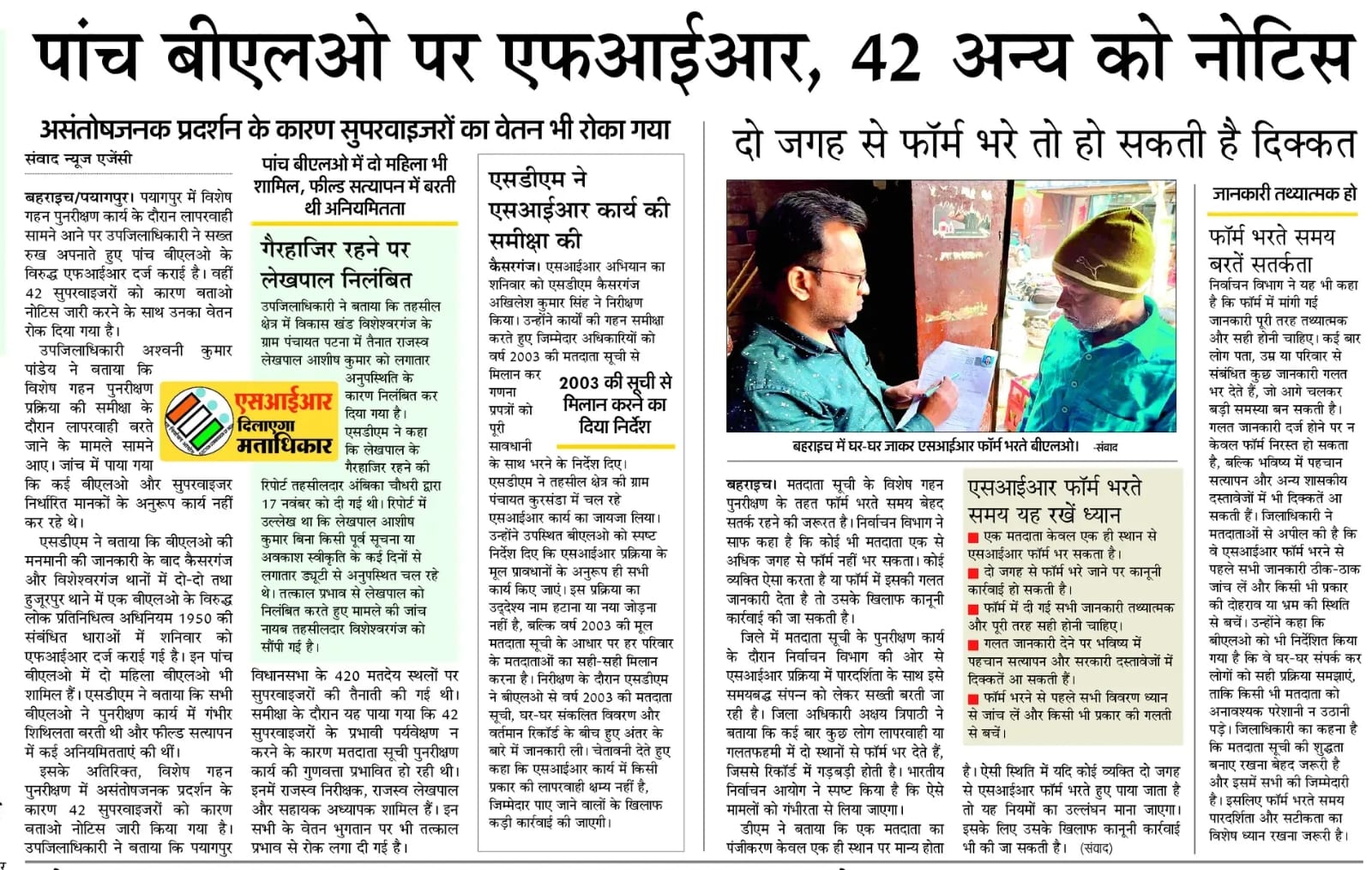 पांच बीएलओ पर एफआईआर, 42 अन्य को नोटिस