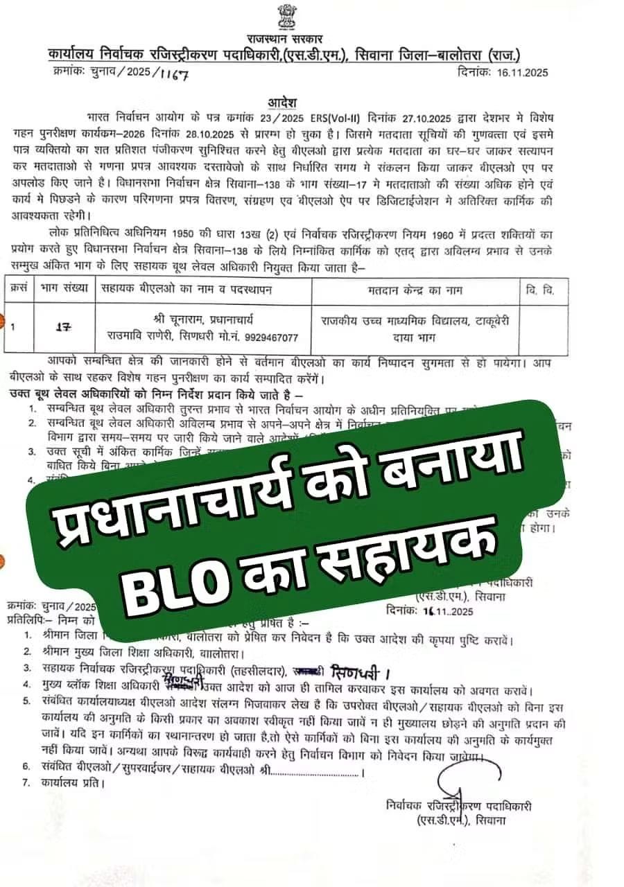 Home PRIMARY KA MASTER NEWS सभी BLO खुश हो जाएं…मतदाता सूची सत्यापन अभियान… अब प्रधानाचार्य को बनाया BLO का सहायक