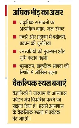 वैज्ञानिकों ने 23 साल के आंकड़ों के अध्ययन के आधार पर पहली बार इन धामों की वहन क्षमता (कैयरिंग कैपैसिटी) तय की है। रिपोर्ट में हिमालय पर स्थित आस्था स्थलों के संवेदनशील पर्यावरण के प्रति आगाह किया गया है।