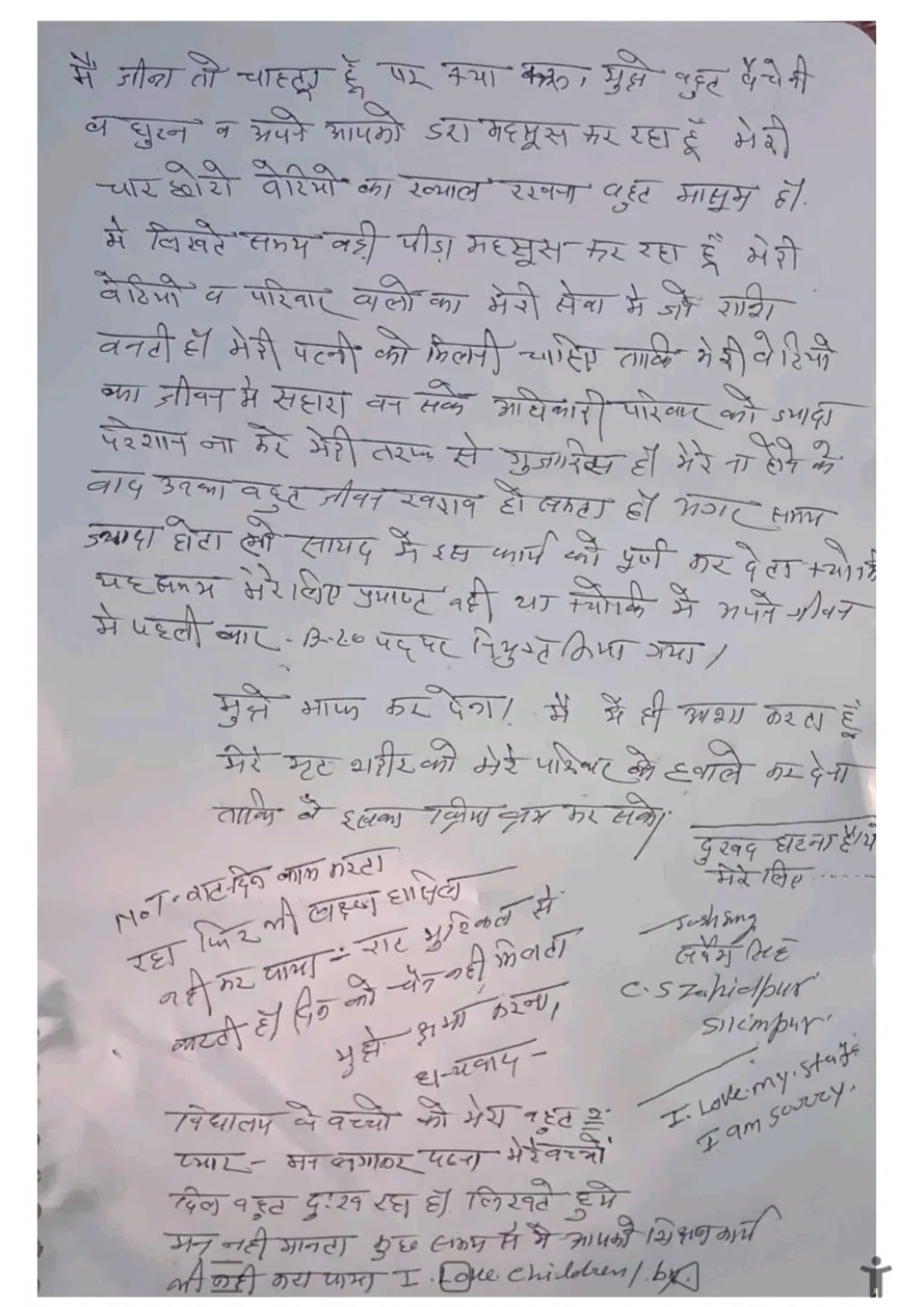 46 वर्षीय सर्वेश सिंह भगतपुर टांडा ब्लॉक के जाहिदपुर सीकमपुर गांव स्थित कंपोजिट विद्यालय में सहायक अध्यापक के पद पर तैनात थे। उन्होंने शिक्षा विभाग के अधिकारियों को भी पत्र लिखा है जिसमें उन्होंने बताया कि सात अक्तूबर को उन्हें बीएलओ बनाया गया था।